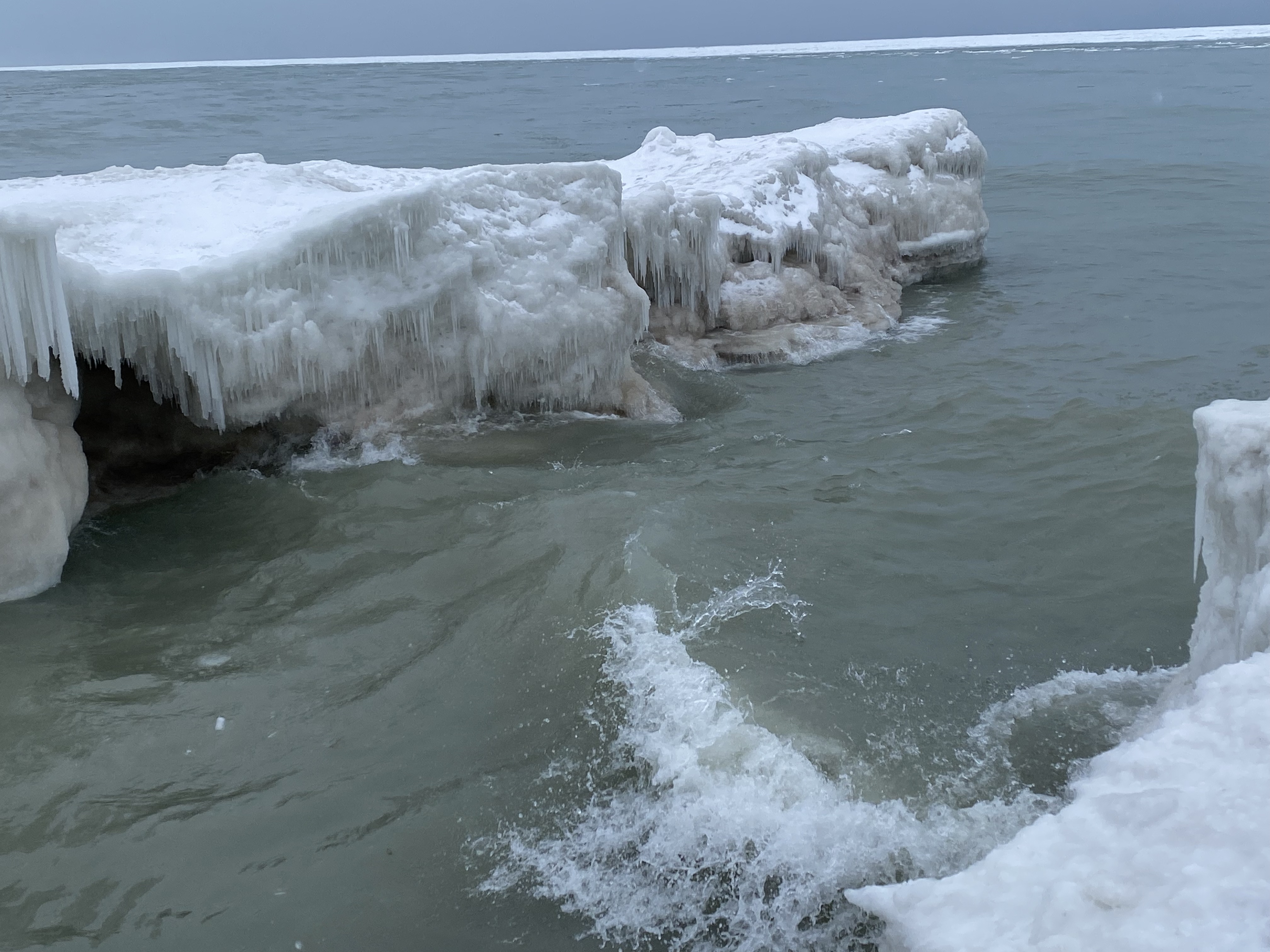 Here’s why you should never walk on the shoreline ice…you never know when there’s a hole underneath.